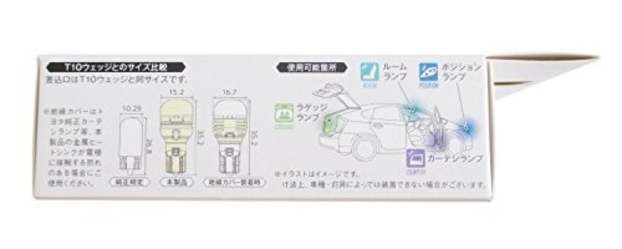 絶縁カバー付き、トヨタ純正カーテシランプ等本製品の金属ヒートシンクが電極に接触する恐れがある場合にご使用ください。