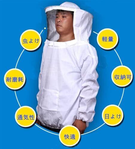 AfinderJP ミツバチ服 帽子 養蜂用 防護服 上着式 フェイスネット 通気性 軽量 防虫服 アウトドア ガーデニング 造園業 養蜂器具 蚊/虫対策 農作業 白
