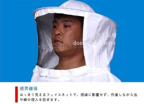 商品名:ミツバチ服 帽子 養蜂用 防護服 上着式 フェイスネット 防虫服 アウトドア ガーデニング 造園業 養蜂器具 蚊/虫対策 農作業 白