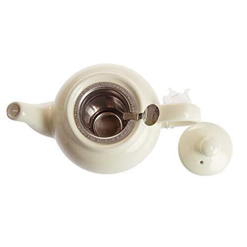 まるっこい形と、機能性の高さで、紅茶の国イギリスの家庭で長く愛されているティーポット。 ころんとしたフォルムで可愛らしくナチュラルなデザインが魅力。 ポットの中には、ステンレス製の目の細かいティーストレーナーが付いています。 茶葉が穴に挟まりづらくなっているため、お掃除がしやすいのも特徴です。 また、ポットの蓋にある凹みと、ストレイナーの持ち手の付け根が引っかかる仕組みになっているため、傾けても蓋がはずれにくい作りになっています。 別売りのティーコジーを被せると、保温力のカバーにもなり、何より見た目の可愛らしさに心をくすぐられます。