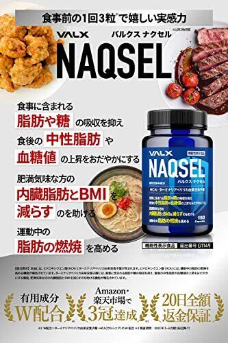 VALX バルクス ナクセル 山本義徳 NAQSEL 厳選素材 180カプセル ガルシニア抽出物加工食品