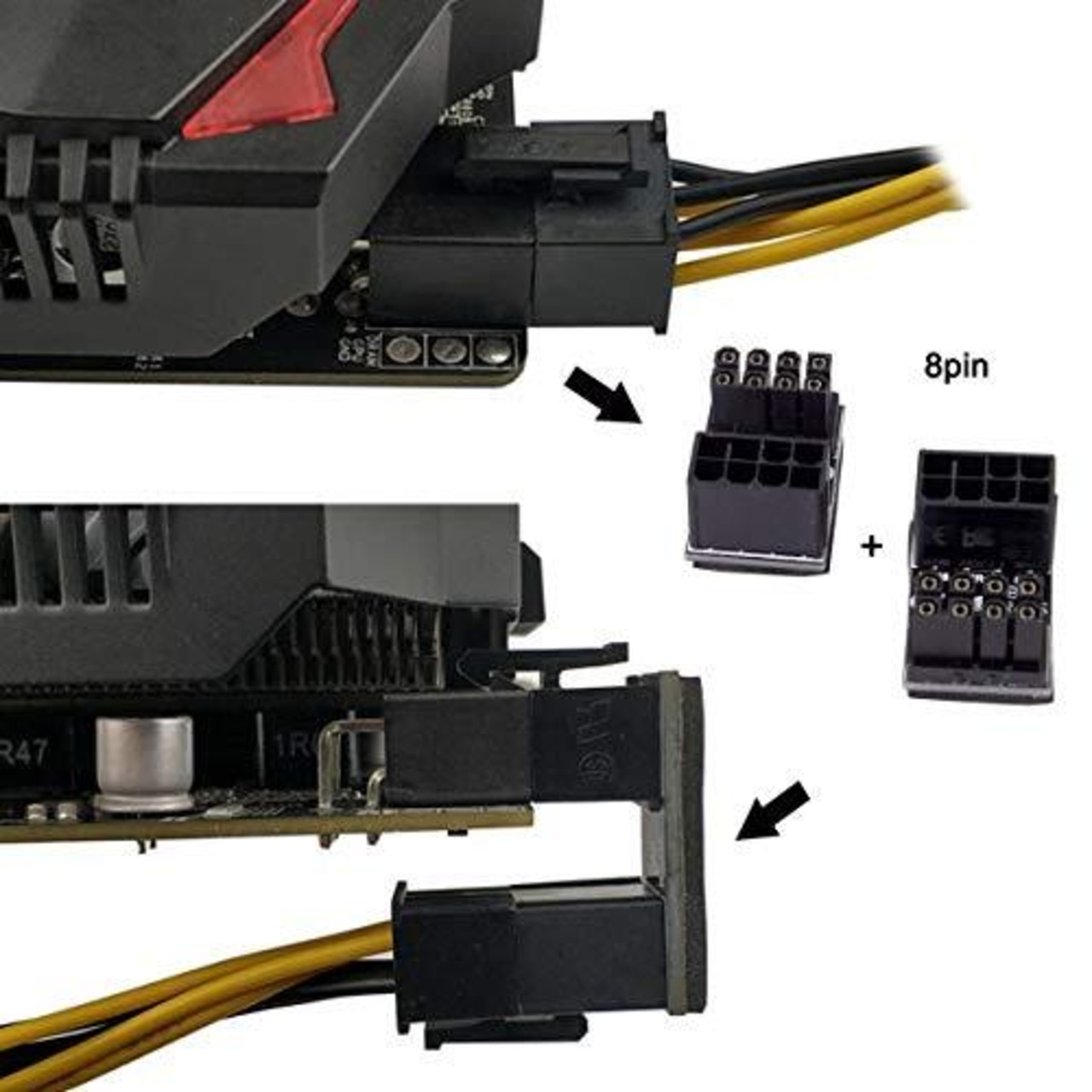このアダプタを使用すると、8PIN電源ケーブルを垂直方向から水平方向に取り付けることができます