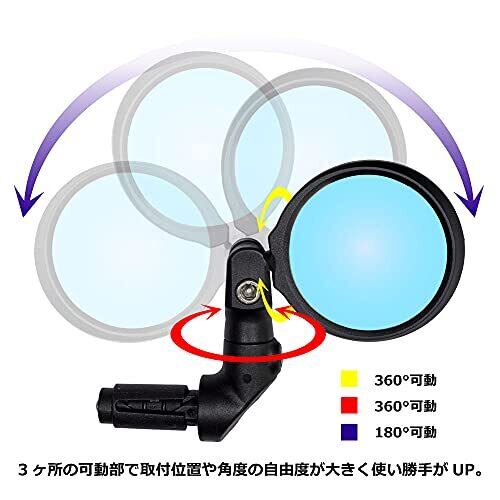 ハンドルエンドに取り付けるタイプ。可動部が3ヶ所あり取付の自由度が大きくなっています。また駐輪時に回転させれば破損を防ぐこともできます。