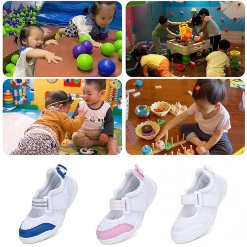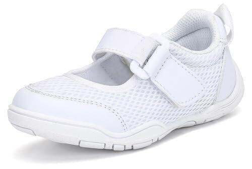 アッパーにはメッシュ素材より作られ、通気性に優れ、汗やニオイを素早く発散させ、子供の足元を乾いた状態に保ちます。また、柔軟性や軽量さを兼ね備え、足に負担をかけず、快適な履き心地を実現します。マジックテープ仕様で、履いたり脱いだりすることが楽々に行え、幼いキッズにピッタリです。また、足の太さに合わせて調節も可能で、フィット感よく履いて頂けます。中敷きにも通気性の良い素材を採用したため、臭みやへんなニオイが生じにくく、足元がさっぱりと快適です。また、取り外せる設計なので、長時間履いた後または汚れなどが付いた場合に取り外して洗え、靴内をいつも清潔にキープします。つま先にゆったりを持たせた形状を取り入れ、足の指を圧迫せずにのびのびと動かせます。更に、つま先が補強され、衝撃に強く、子供の足指を守ります。バリエーション豊かなサイズを展開しており、幼稚園から小学校まで幅広い年齢代が着用できます。教室、体育館、ホール、自宅など様々なシーンで活躍しています。