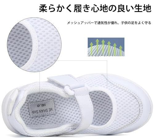 [Mishansha] 子供 上履き マジックテープ 幼稚園 保育園 学校 うわばき スクールシューズ 男の子 女の子 (14.5cmホワイト)