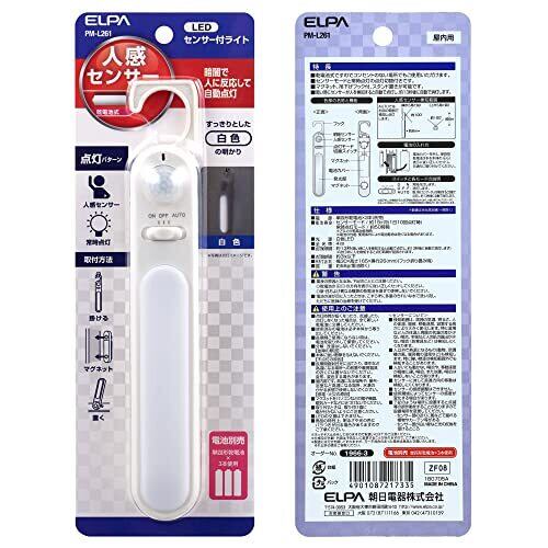エルパ (ELPA) LEDセンサー付ライト (白色/電池式) 人感センサー/持ち運び/フック/スタンド/貼り付け (PM-L703)