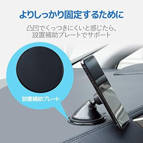 ■スマートフォンを車内に設置し、簡単に付け外しできるスマホ用車載マグネットホルダーです。 ■浅めのシボであればホルダーをしっかり吸着固定することができる強力ゲル吸盤タイプです。 ■※吸盤の吸着力が弱まってきた場合、水洗いすることで吸着力が回復します。 ■シボが深めのダッシュボードなどへの吸盤設置を補助する設置補助板が付いています。 ■ホルダー内部にネオジム磁石を搭載し、片手でスマートフォンを付け外し可能です。