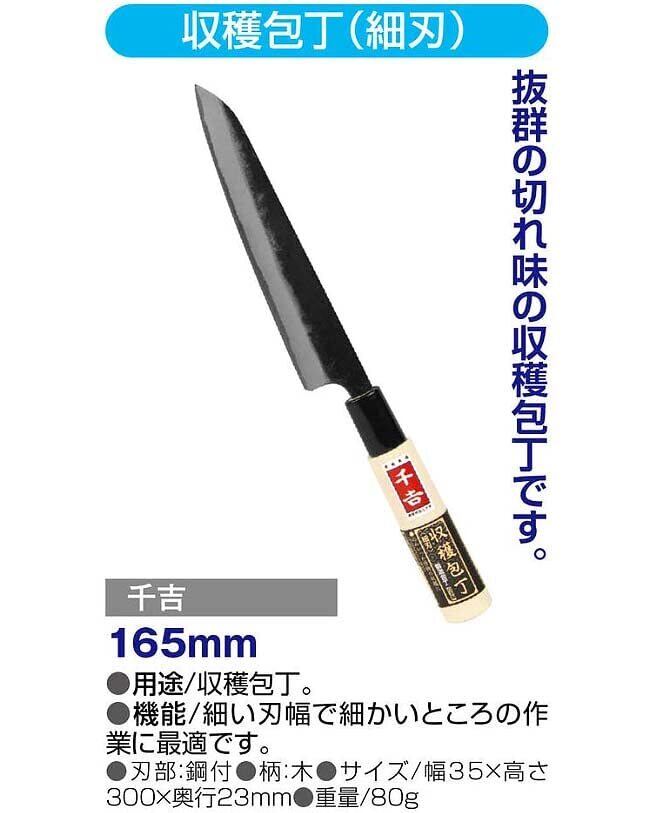 千吉 収穫包丁 細刃 込み入った野菜の収穫用 165mm 日本製