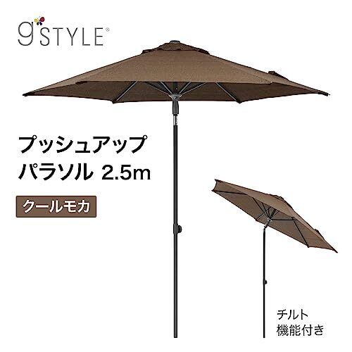 タカショー 日よけ プッシュアップパラソル 2.5m クールモカ 【GSTY-P10M】 ガーデンパラソル 紫外線カット