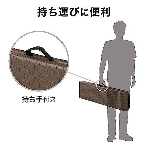 折りたたんでさっと収納できるオシャレなラタン調ガーデンファニチャー。重量感のあるしっかりとしたつくり。座面は樹脂製なので、汚れても水洗いができ、お手入れも簡単です。持ち手が付いているので、持ち運びも便利です。面倒な組み立てもありません。