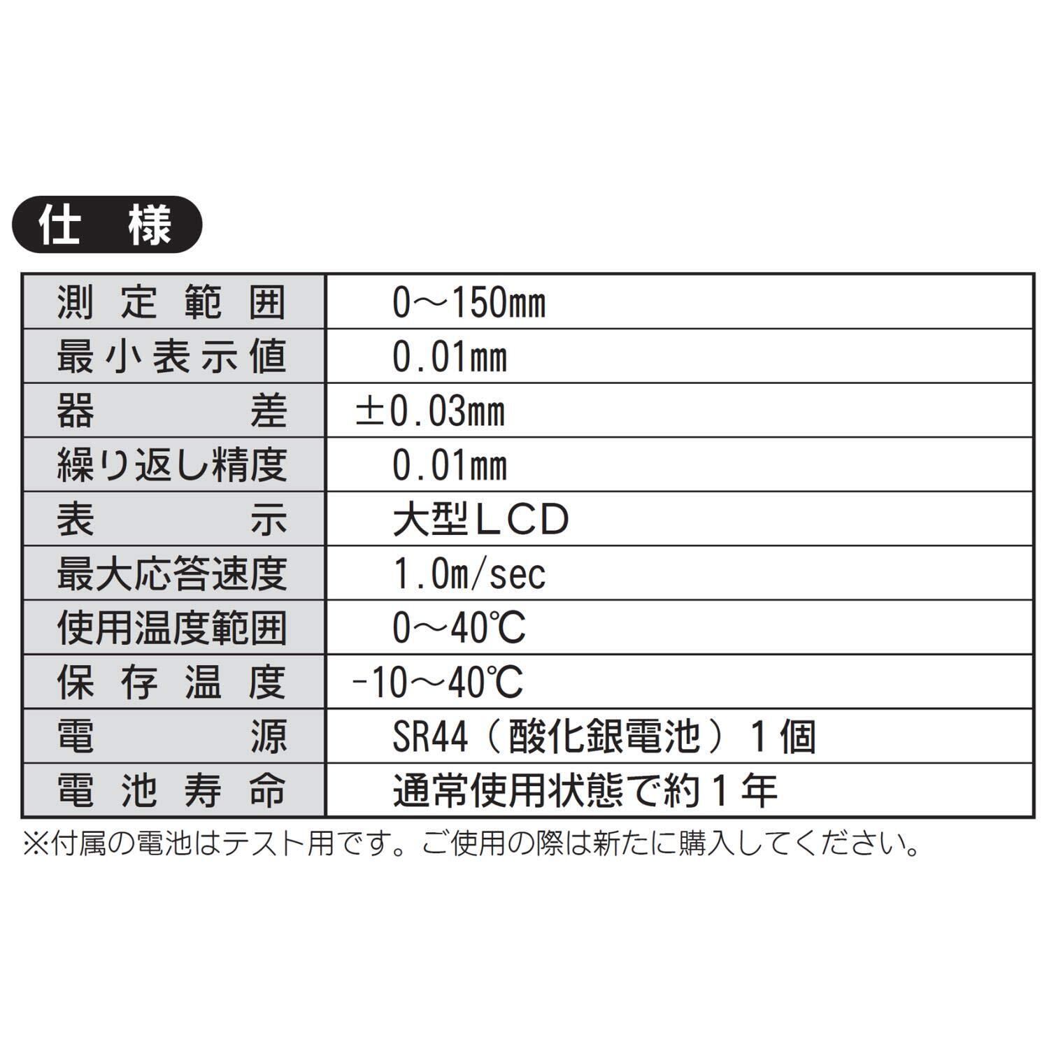 使用電池:SR44(酸化銀電池)1個(テスト用付属)