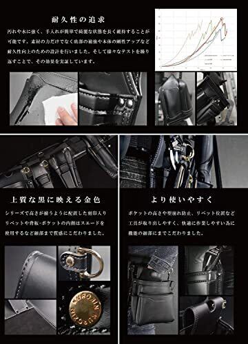 ・ポケットの高さや型崩れ防止・リベット位置など、工具が取り出しやすく作業しやすさを追求