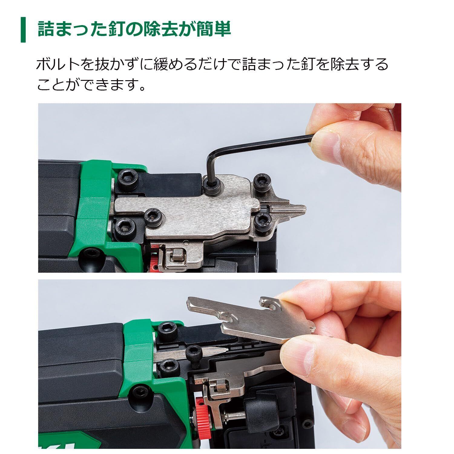 ボルトを緩めるだけでガイドプレートが取り外せて、詰まったピン釘の除去が容易。