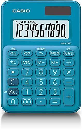 カシオ カラフル電卓 レイクブルー 10桁 ミニミニジャストタイプ MW-C8C-BU-N