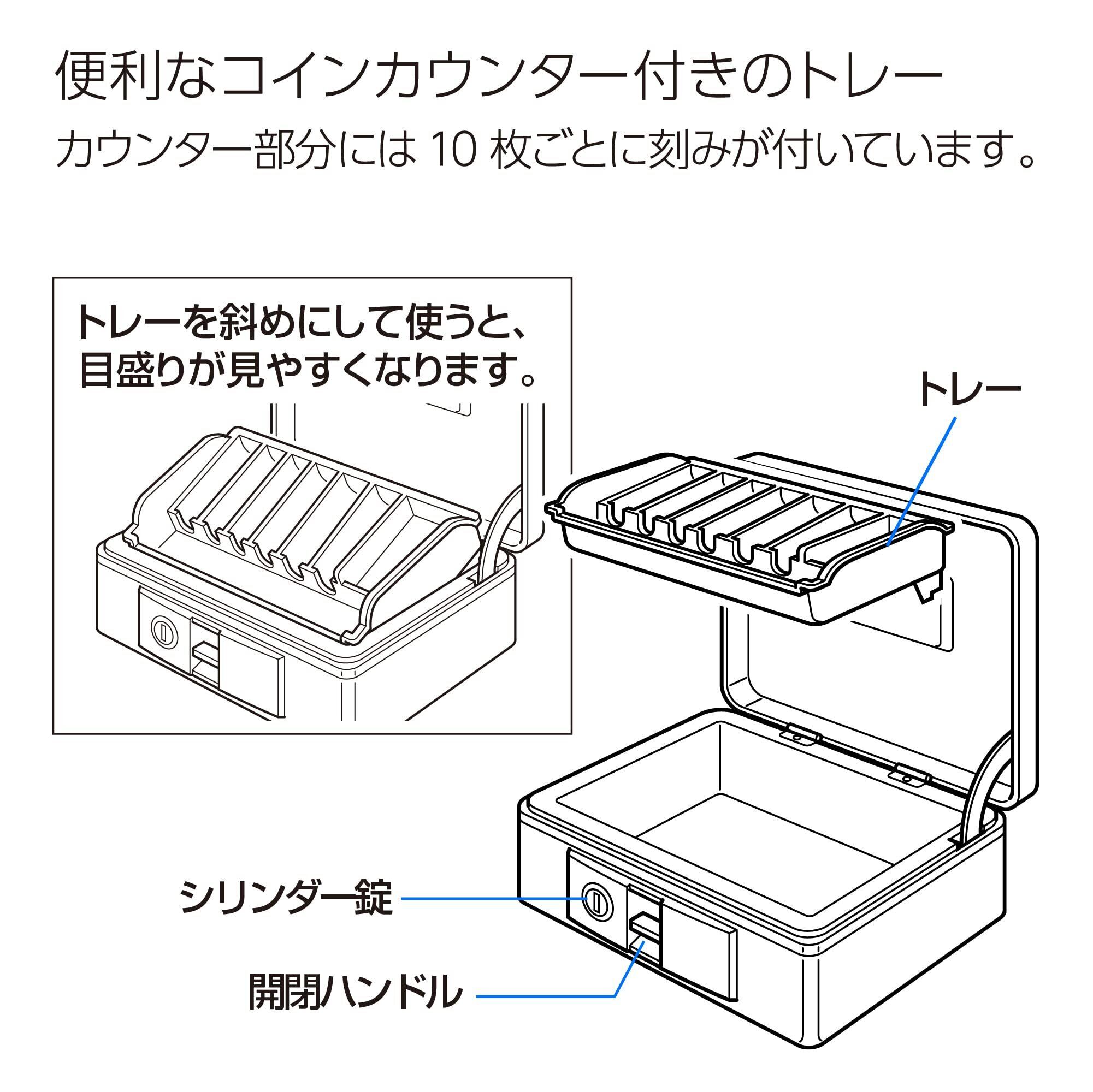 ●大変便利なコインカウンター付きのトレーを採用した手提げ金庫です。