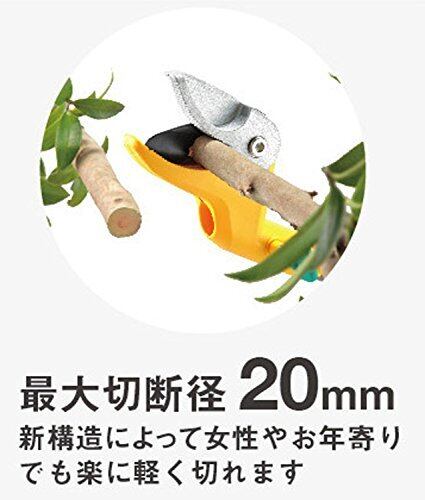 最大切断径:約20mm ※生木専用です。樫や柿など樹木の種類によっては切断径が異なる場合があります