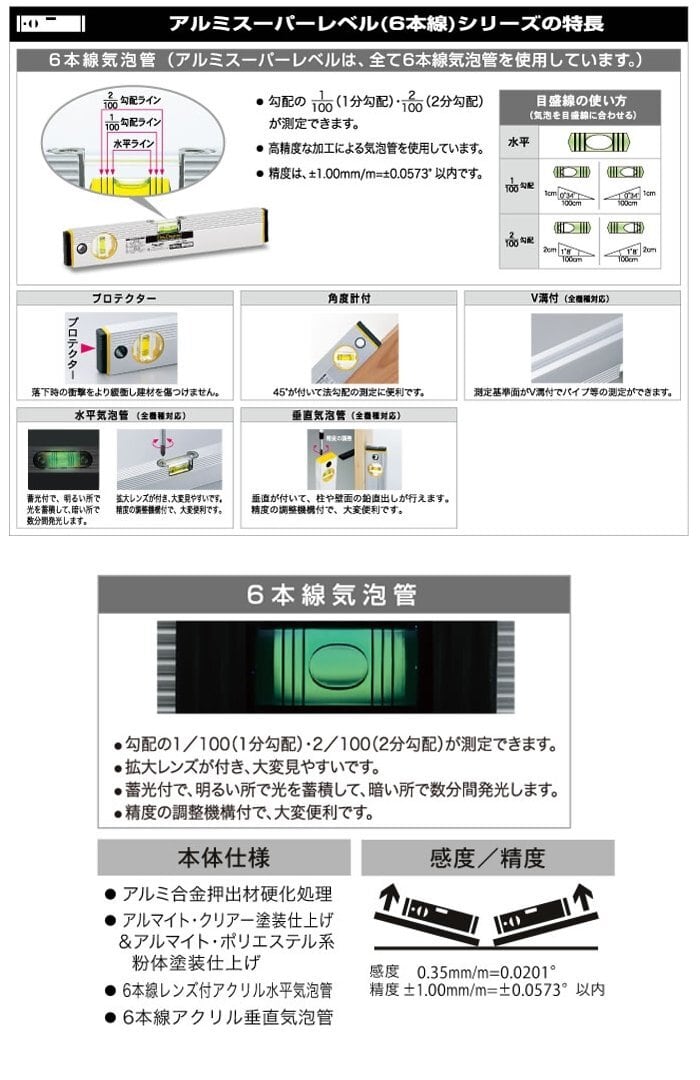 建築・土木・DIYなど幅広い分野で高い信頼の"エビスの水平器・レベル" アルミスーパーレベル(6本線)