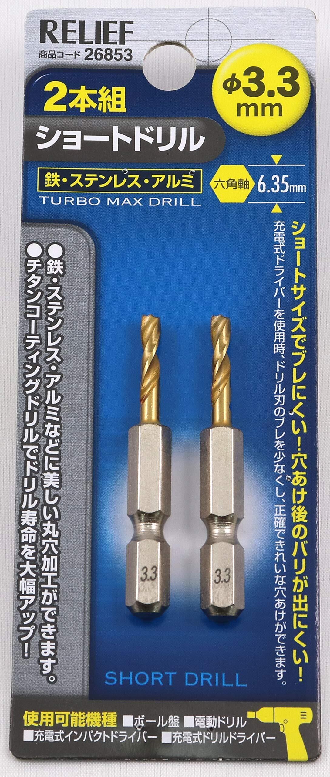 イチネンアクセス RELIEF(リリーフ) 鉄工ドリル 2本組 六角軸ショートドリル 3.3mm 26853 鉄工用 チタンコーティング