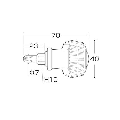●製品寸法:全長70mm、軸長23mm、軸径7mm丸軸、ボルスターH10mm、ハンドル最大径36mm