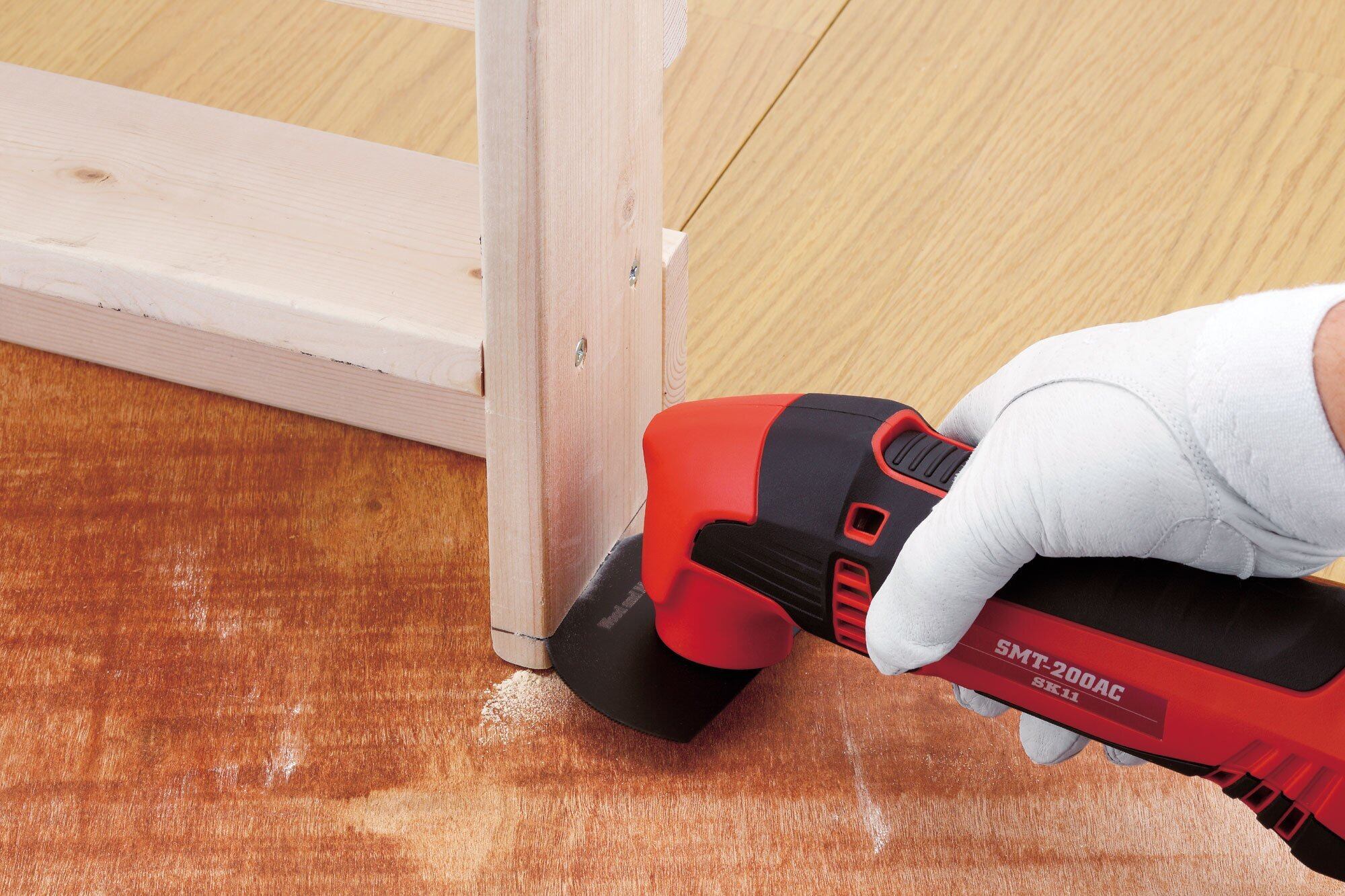 高速振動を利用して木、石工ボード非鉄金属の切断や切り抜き、タイル、レンガの研磨、硬質ボンドやクロス、フロア材の剥離などいろんな作業ができる。
