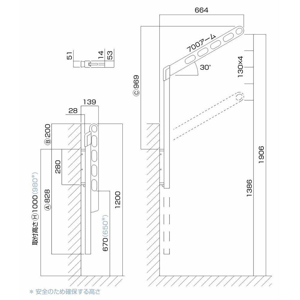 ●アームの収納高さ調整可能(スライド式ストッパーによる)