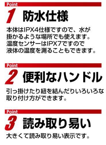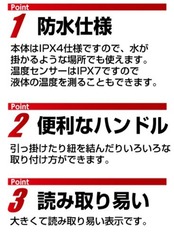 温度センサー部はIPX7ですので、液体の温度を測ることもできる。