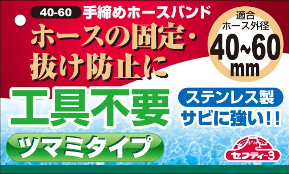 【2022最新】セフティー3 ステンレス製 手締めホースバンド 外径 40~60mm用 青い
