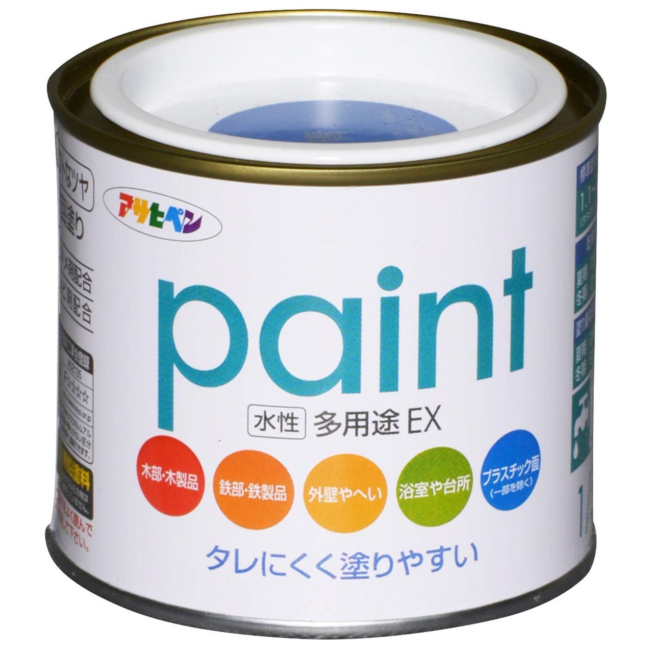 アサヒペン 塗料 ペンキ 水性多用途EX 1/5L 青 水性 多用途 半ツヤ ソフトなツヤ 低臭 防カビ サビドメ剤配合 タレにくく塗りやすい シックハウス対策品 日本製