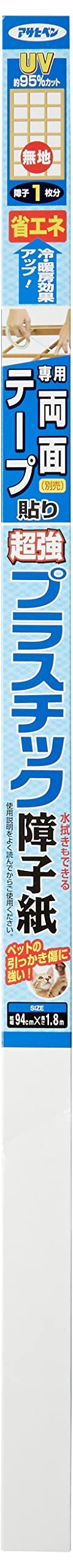 アサヒペン 障子紙 プラスチック UVカット 超強プラスチック障子紙 幅94CM×長さ1.8M 品番6801 無地 両面テープ貼り ペットの引っかき傷に強い 丈夫 破れにくい 冷暖房効果アップ U Vカット95%カット 色あせ 変色防止 障子1枚分 日本製