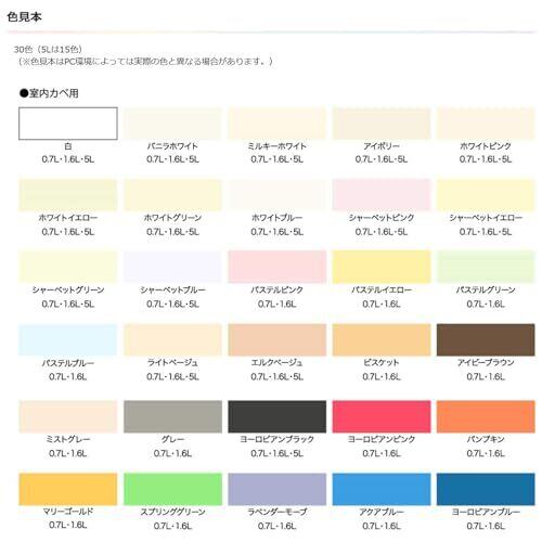 用途:(屋内外区分:屋内用)●リビング、寝室、子供部屋などの室内壁や天井(カベ紙・ビニールカベ紙)。●窓枠などの木部。●和室壁や天井(しっくい壁・京壁・土壁・砂壁・せんい壁・コンクリート・モルタル)。●浴室、キッチン、洗面所、トイレなどの壁や天井。