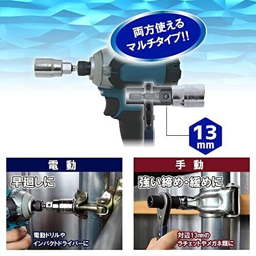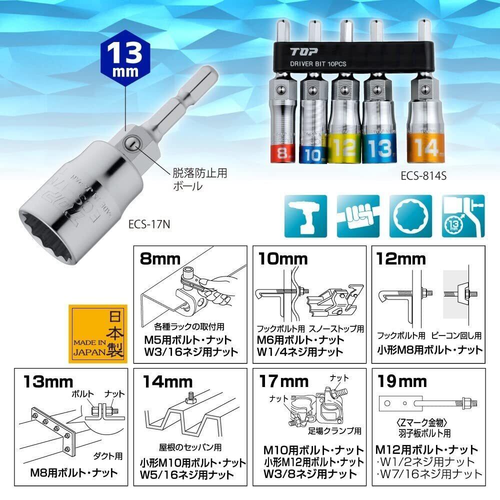 トップ工業 (TOP) 電動ドリル用 マルチソケット 対辺17mm 12角仕様 電動手動兼用 13mmレンチ使用可能 ECS-17 燕三条 日本製