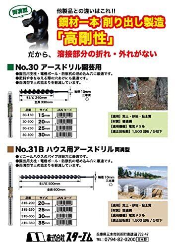 スターエム 31B-200 アースドリル 両溝型 20mm