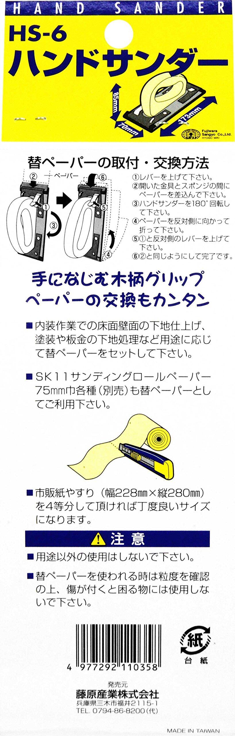 SK11 ハンドサンダー 木柄グリップ式 幅70×長さ173×高さ85mm HS-6
