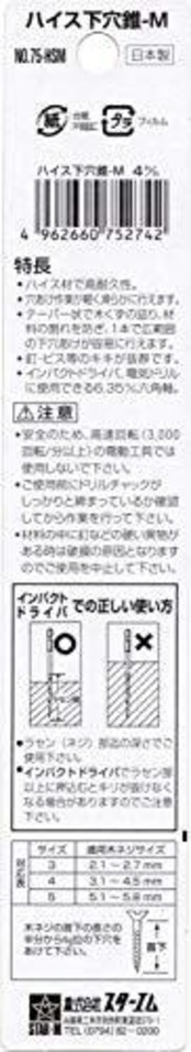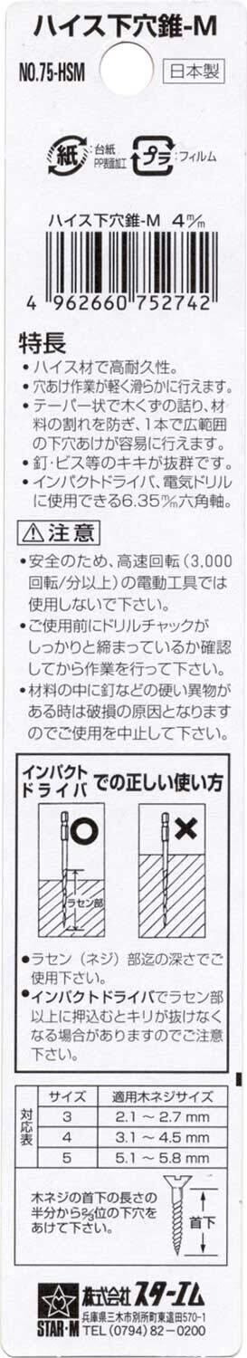 スターエム 75HSM-040 ハイス下穴錐-M 4mm