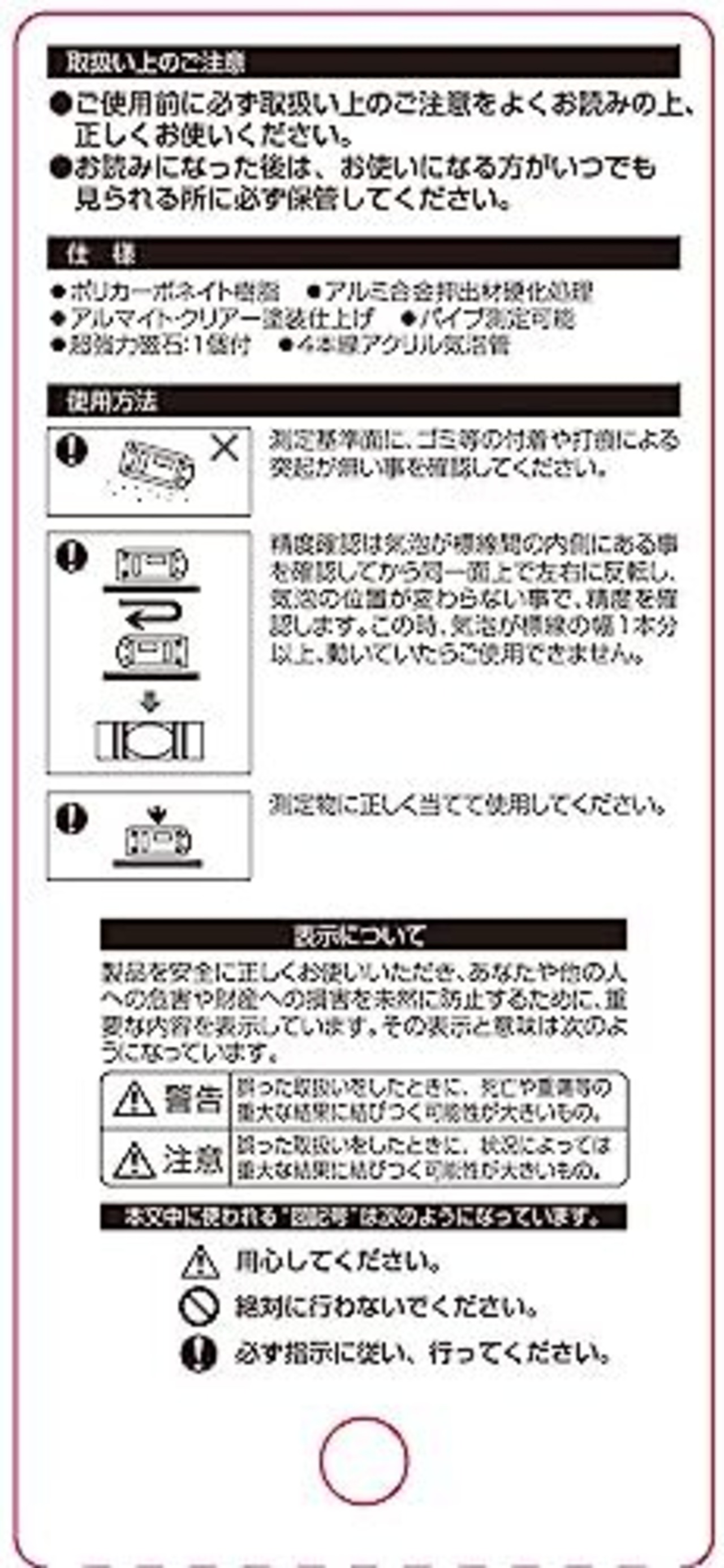 感度:0.50mm/m=0.0286°/ 精度:±1.00mm/m=±0.0573°内