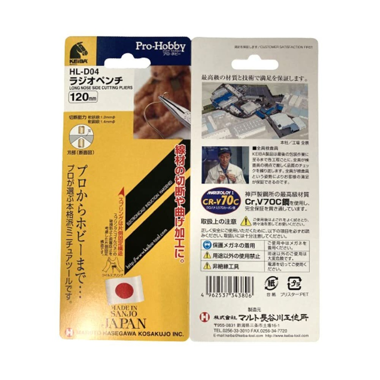 ケイバ プロホビー ラジオペンチ・溝付 120mm HL-D04