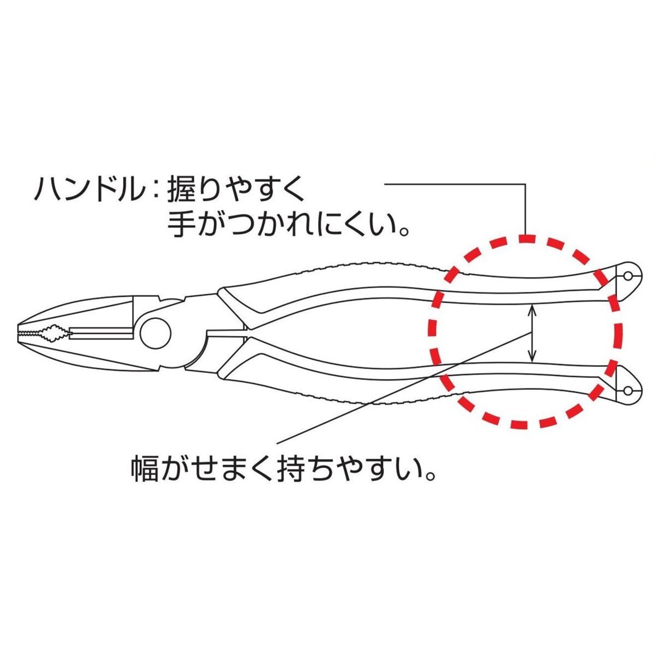 ハンドルは当社独自の幅狭設計により、力が入りやすく握りやすくなっています。