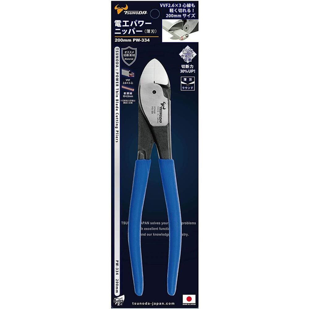 ツノダ(Tsunoda) 電工パワーニッパー 薄刃 200mm 圧着機能付 PW-334