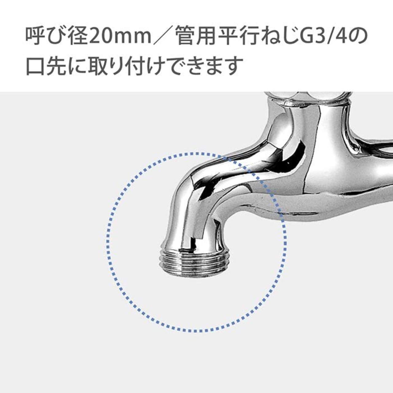ネジ付き蛇口に取り付けて、コネクター(別売り)付きホースの取り外しがワンタッチに!取付られる蛇口はネジ付き蛇口、地下散水栓。呼び径20、管用平行ネジG3/4。
