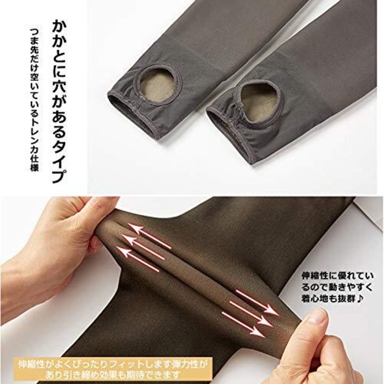 【裏起毛】220gの場合は、0~15°C対応。つま先のない、かかとに生地をひっかけて履くトレンカタイプです。中は柔らかく肌触りのいい裏起毛素材(ベージュ)です。保温性が高く着けた瞬間からあたたかいです。厳冬期でも温かくやさしく脚を包み込んでくれます。