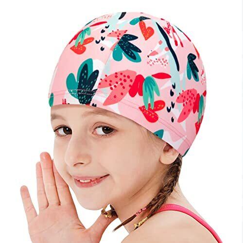 スイムキャップ スイミングキャップ 子供 可愛い 水泳キャップ 速乾 防水 水泳帽 軽い ゆったり 男の子 女の子 ロングヘアー対応 水着帽子 プール 温泉 海水浴用 緑ピンク狐柄