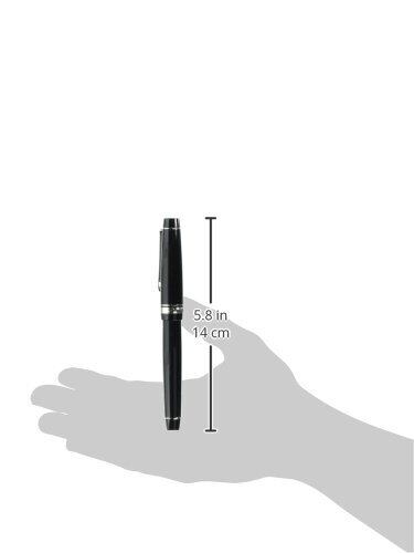 大型ペン先(14金、10号)の本格派万年筆です。上級モデルらしい重量感とバランスの良さを備えています。ブラックとシルバーのシンプルなデザインも魅力です。。プッシュ式コンバーターが付属しています。。ペン先:14金。10号。全長140mm・軸最大径16mm。。サイズ:縦=140mm 厚さ=16mm。商品色傾向:黒。。