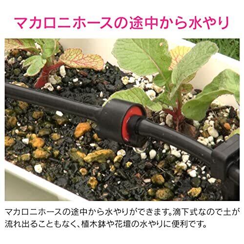 ・マカロニホース同士の間に取付けて、植物の根元に水滴を落として水やり