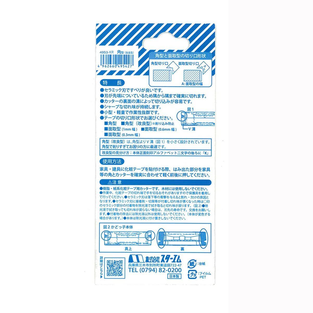 家具、建具等に化粧テープや木口テープを貼り付ける際、はみ出た部分をかどっ子を前後にスライドさせて切り取ります。 防犯フィルムやダイノックフィルムのカットにも使用されています。