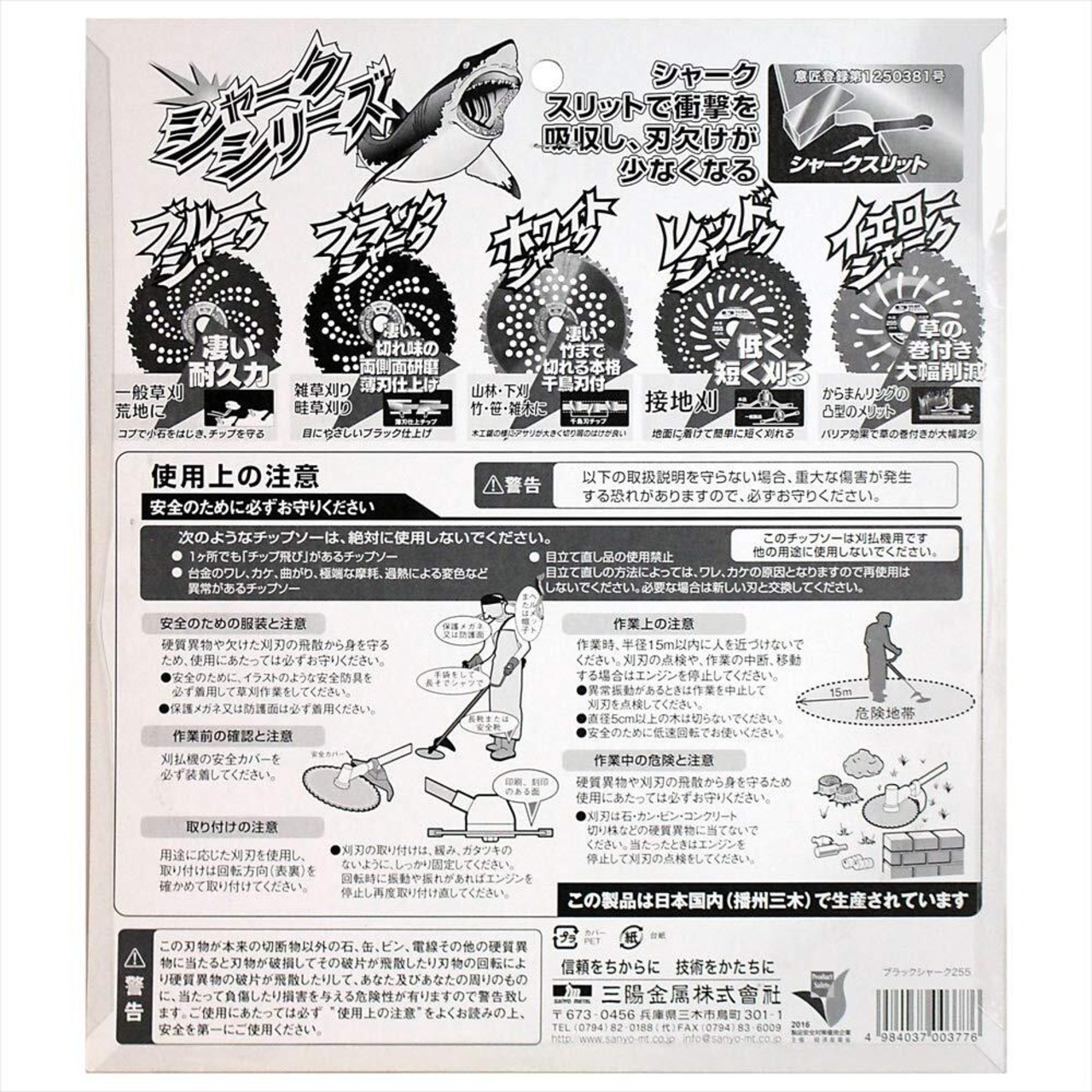 【数量限定】三陽金属(Sanyo Metal) 日本製 草刈機用チップソー ブラックシャーク 両側刃 255mm 40P 雑草刈り 畦草刈り 草刈り 除草