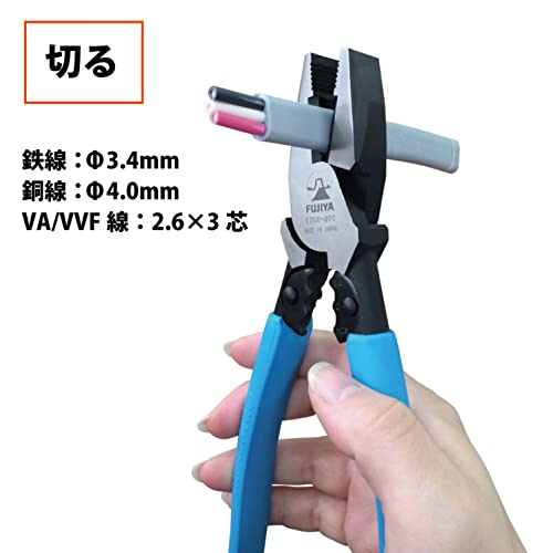 フジ矢 ハイパワーペンチ (簡易圧着付) 200mm 偏芯テコでらくらく切断 1700-200 ブルー