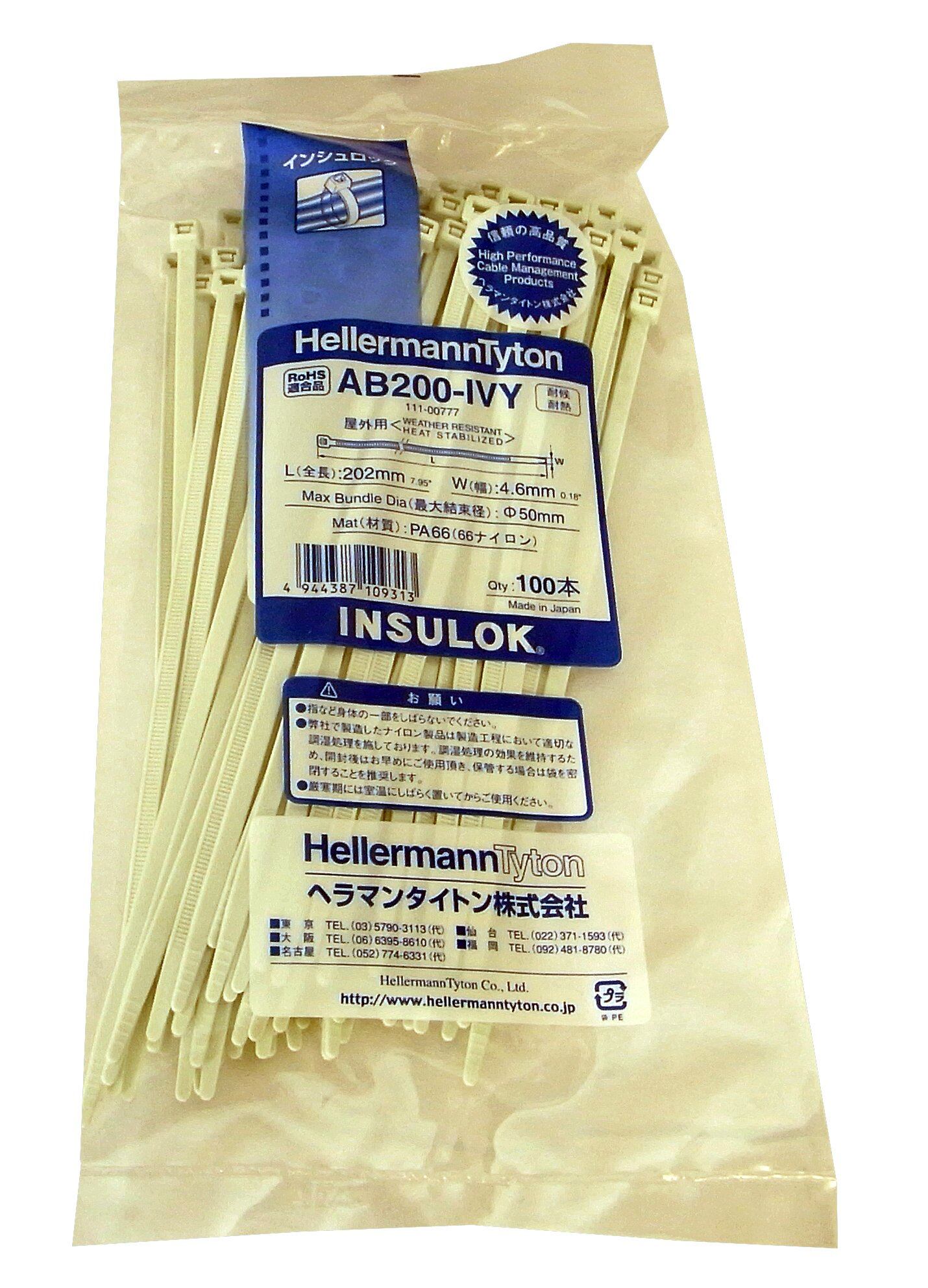 ヘラマンタイトン 結束バンド インシュロック AB200-IVY 100本入 耐候・耐熱用グレード アイボリー