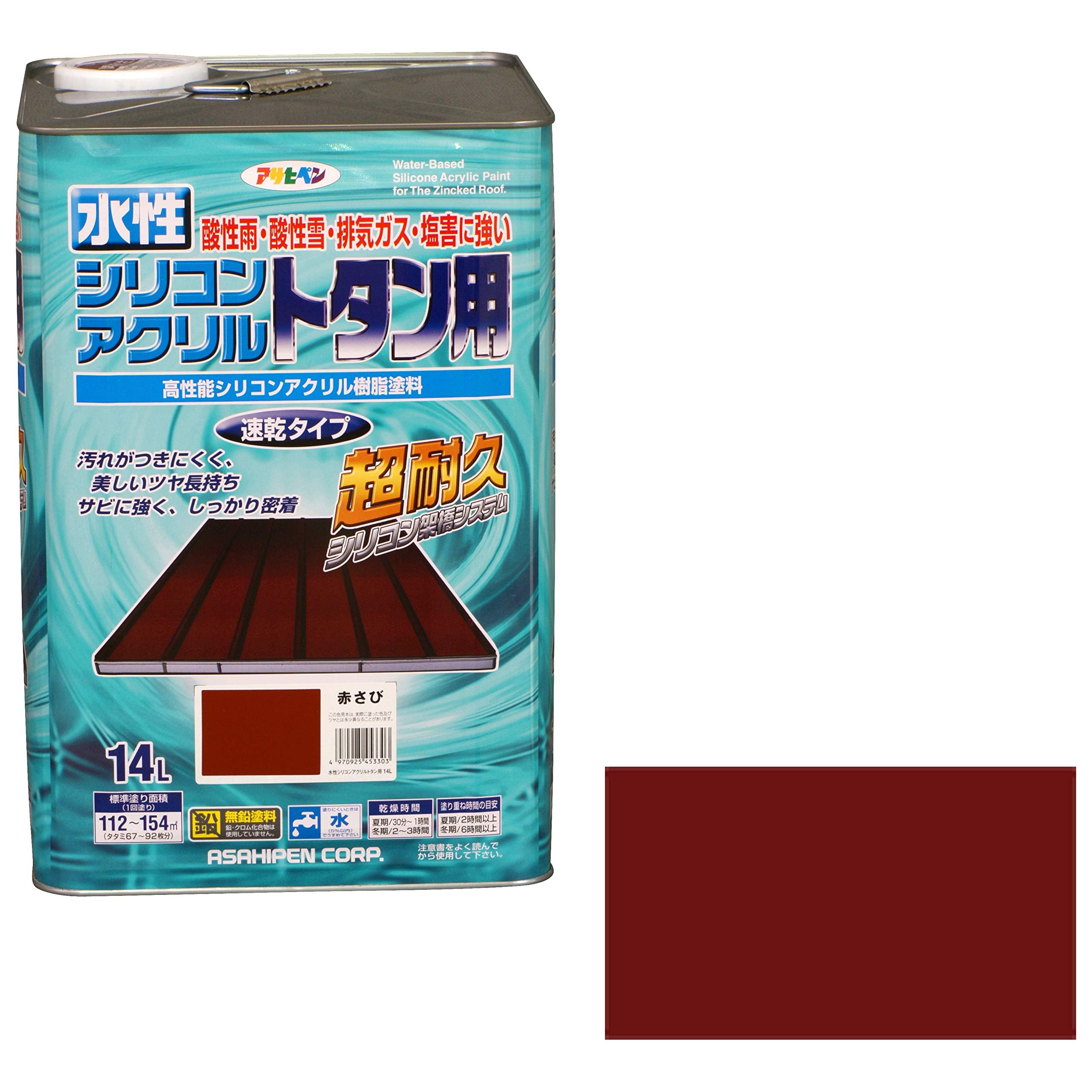 アサヒペン 塗料 ペンキ 水性シリコンアクリルトタン用 14L 赤さび 水性 トタン 屋根塗料 ツヤあり 超耐久 1回塗り 速乾 紫外線劣化防止剤配合 日本製