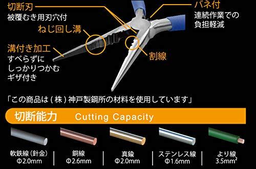 切断能力:ステンレス/直径0.9mm、軟鉄線/直径1.6mm、銅線/直径2.6mm、より線/2.0mm2
