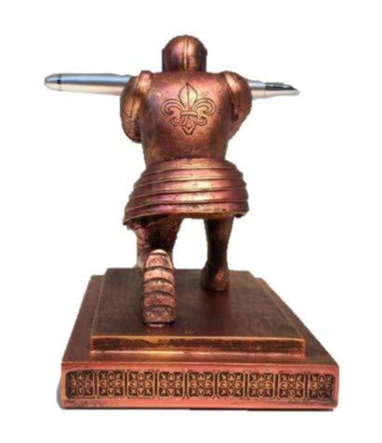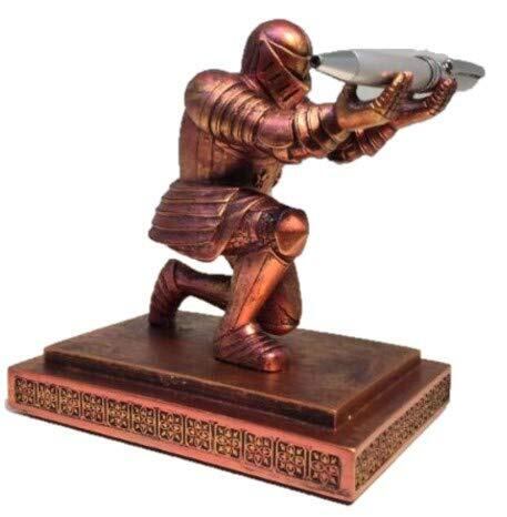 商品重量:670g(ボールペン含む) サイズ 横幅:9.8cm 奥行13.6cm 高さ15.0cm 剣の代わりにペンを持つ西洋騎士のペン立てです。ボールペンも付属します。
